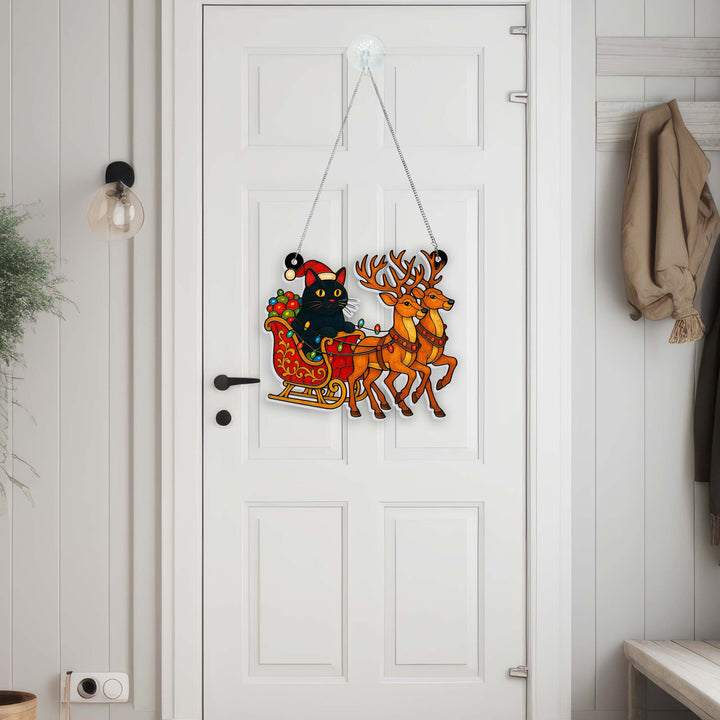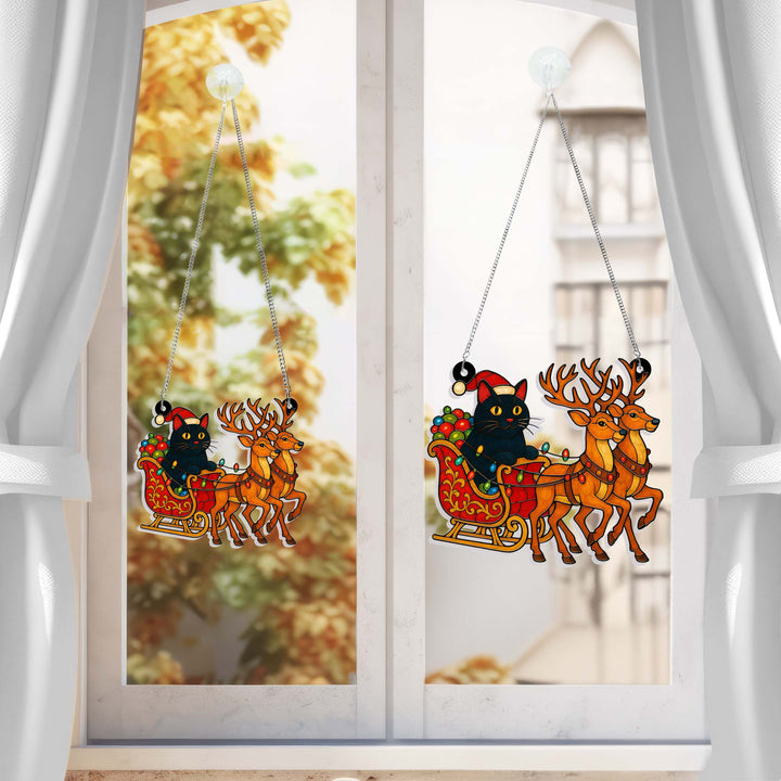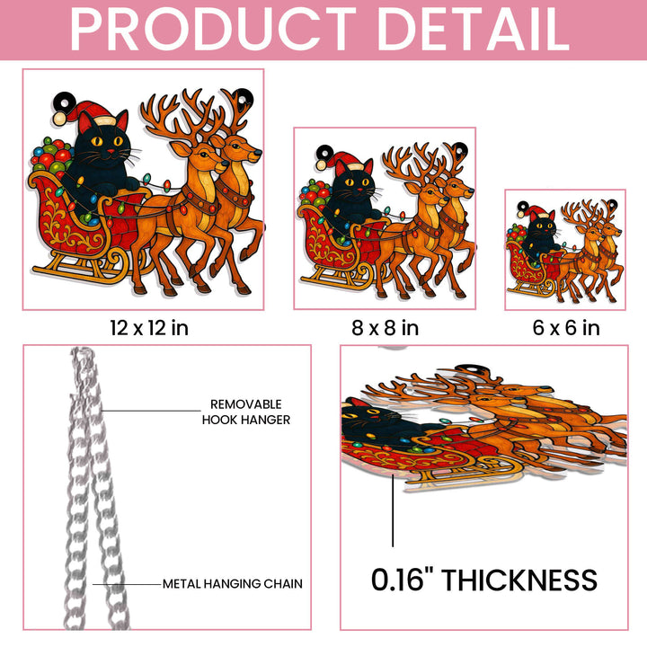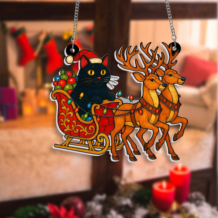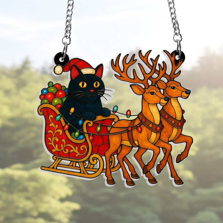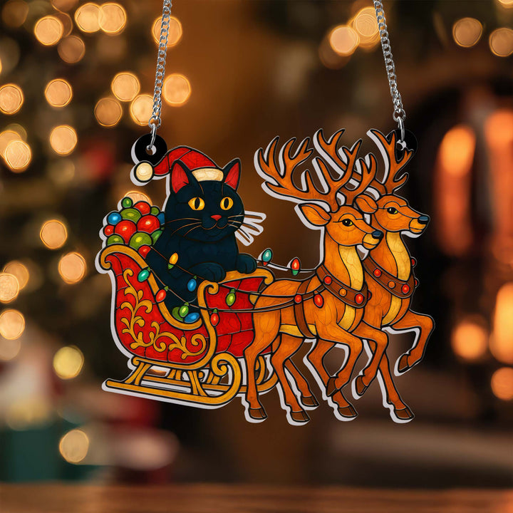 Black Cat Sleigh Ride Christmas Ornament for Holiday Decoration