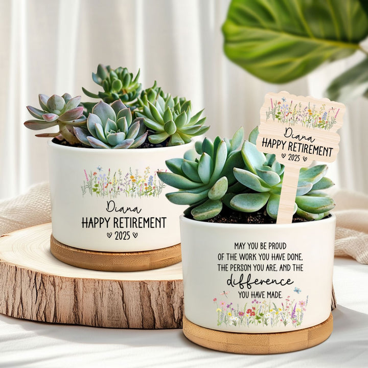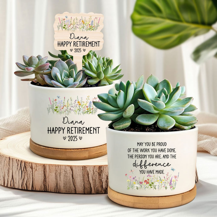 Custom Happy Retirement Flower Planter Gift for Coworker Teacher