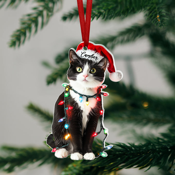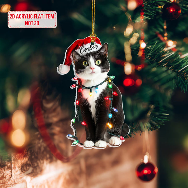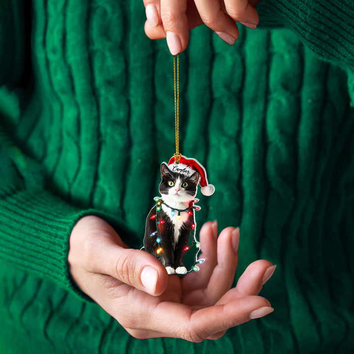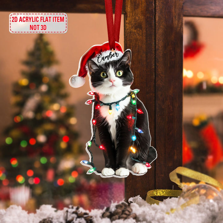 Custom Tuxedo Cat Christmas Acrylic Ornament Gift for Cat Lovers