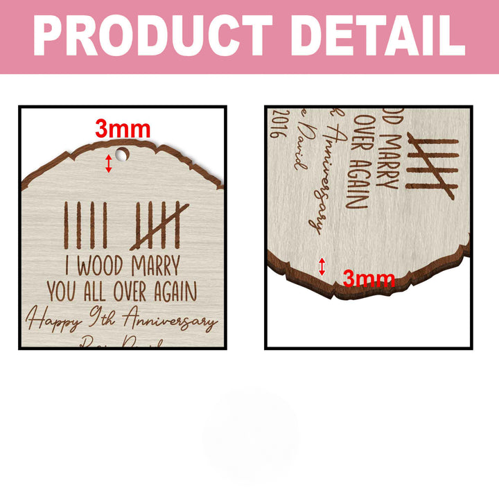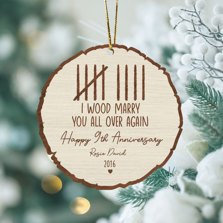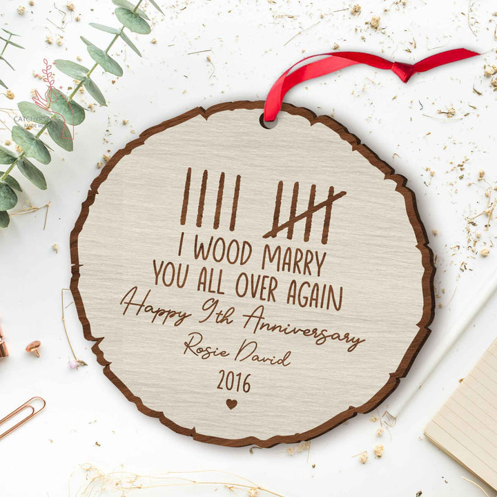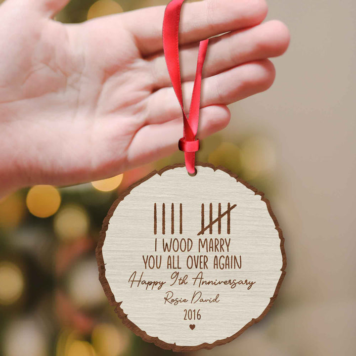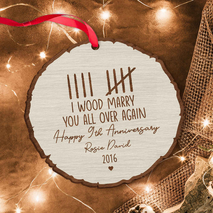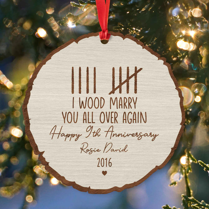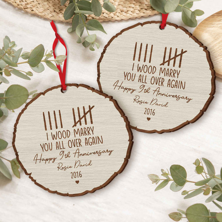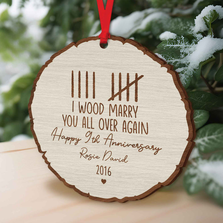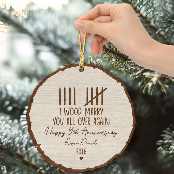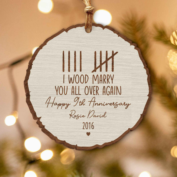 Custom Wood Anniversary Wedding Ornament, I Wood Marry You All Over Again, 5th Year Anniversary Gift, Gift for Couples, Custom Anniversary
