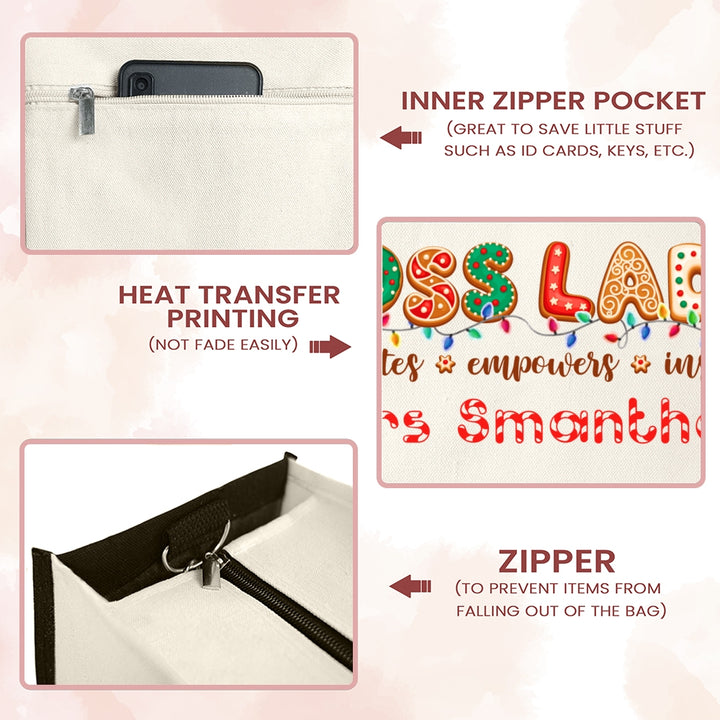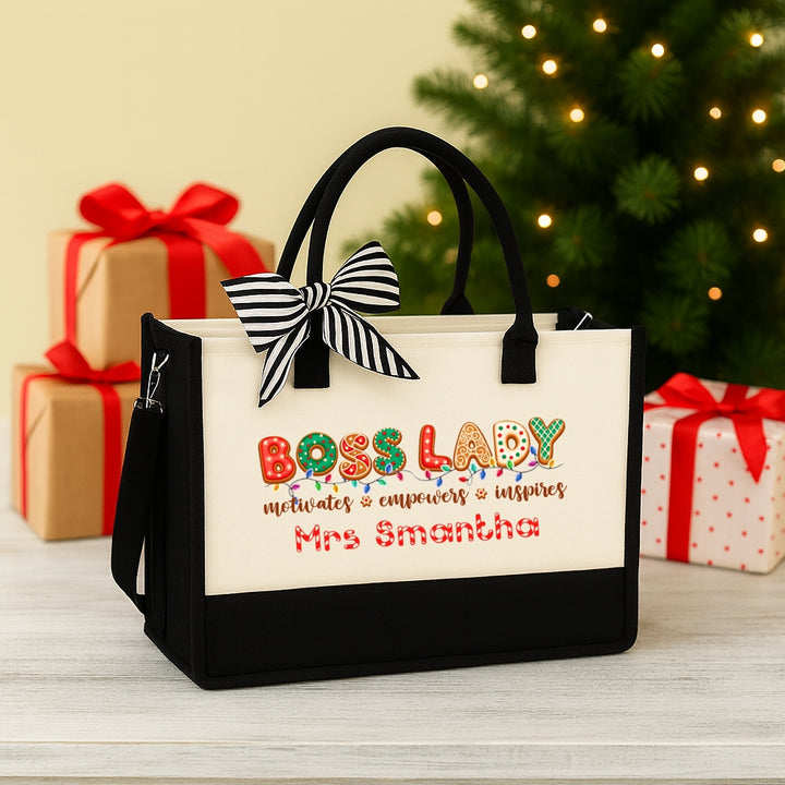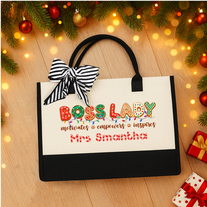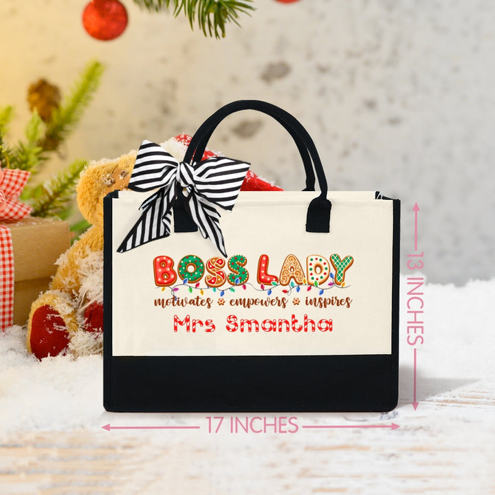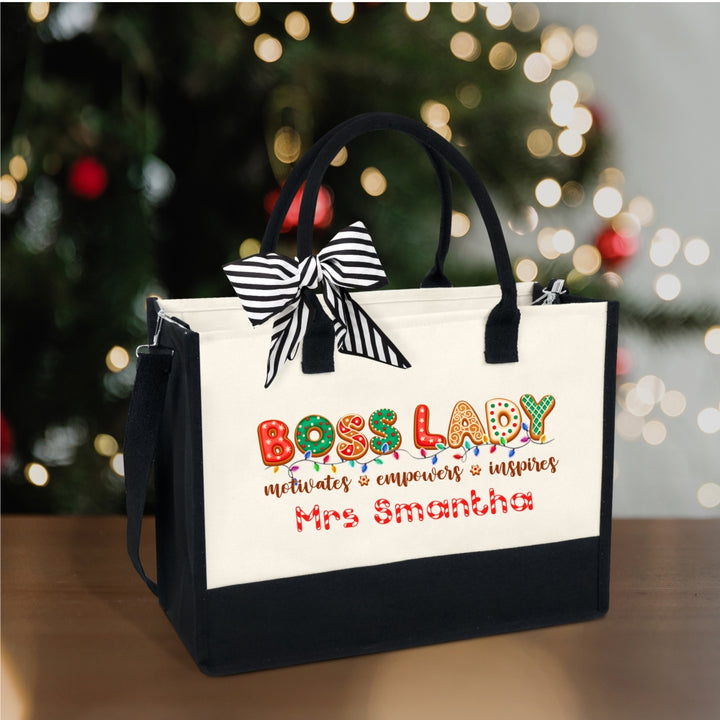 Personalized Boss Lady Christmas Tote Bag Holiday Gift for Female