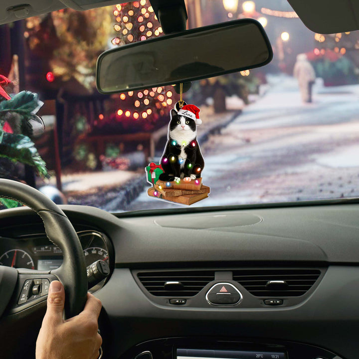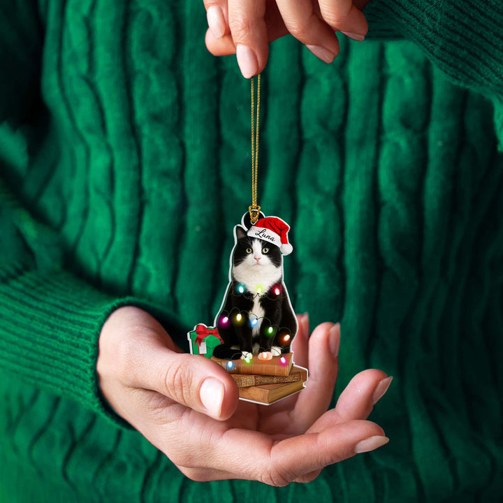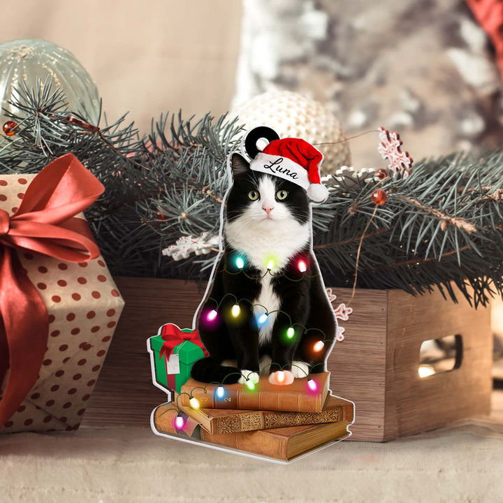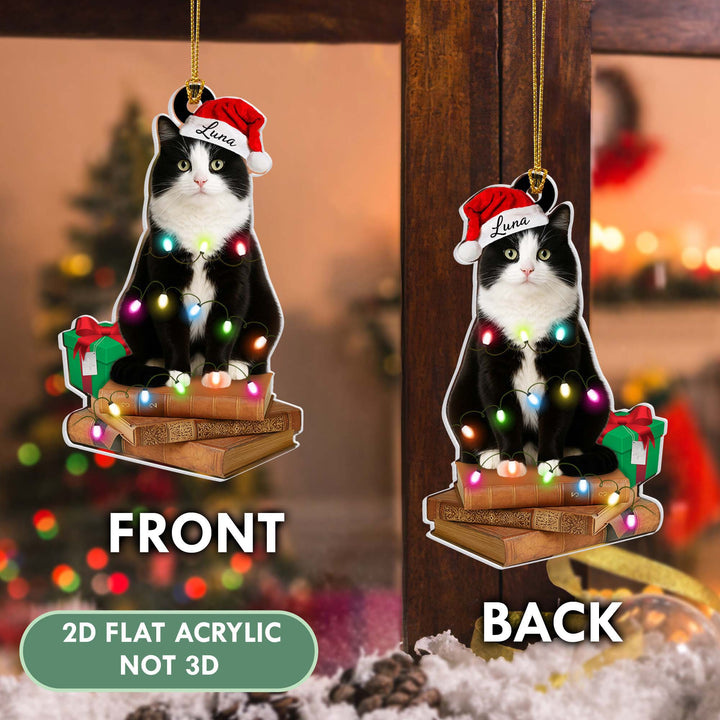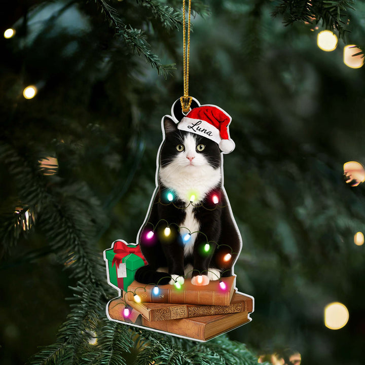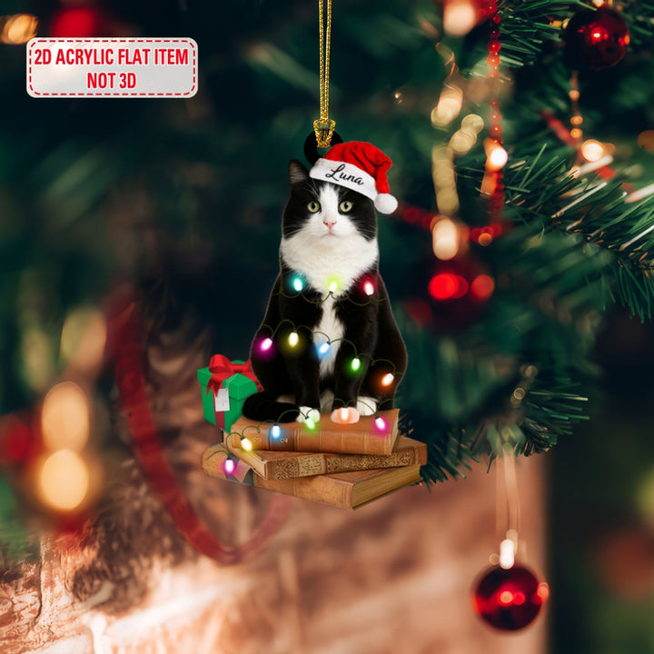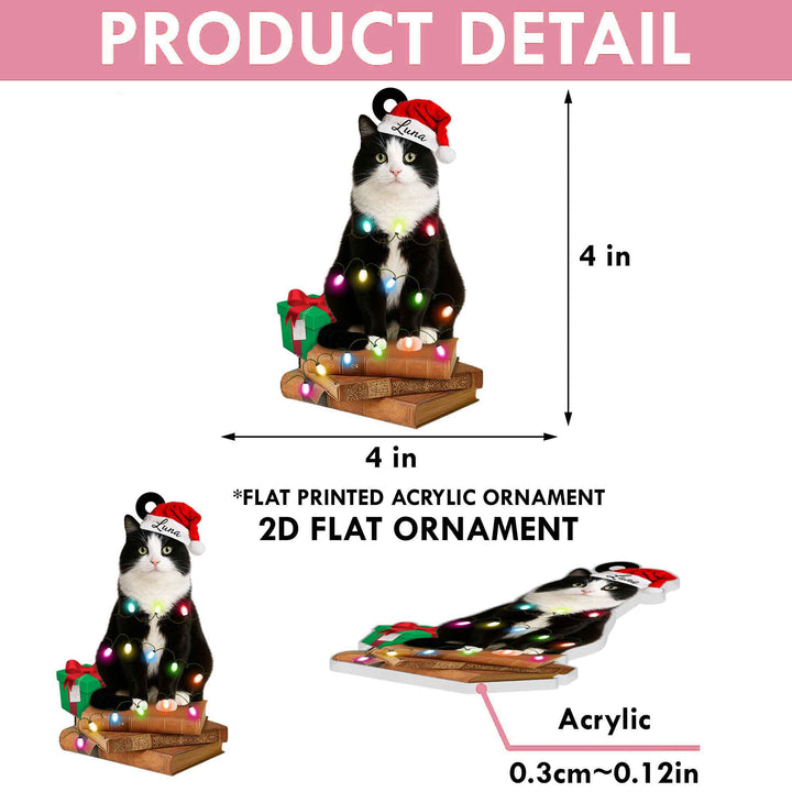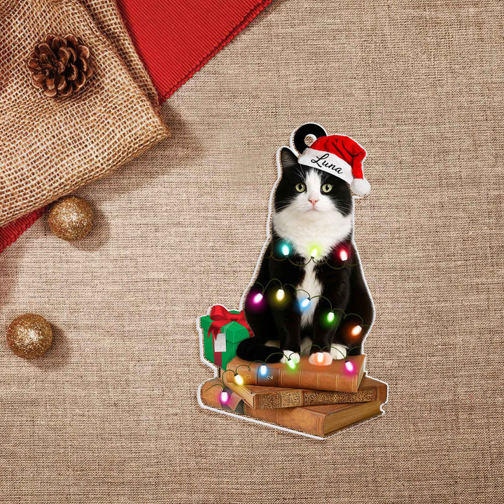 Personalized Cat Christmas Ornament with Custom Name for Book Lovers
