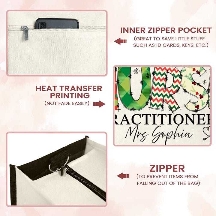 Personalized Christmas Nurse Practitioner Tote Bag Gift for Nurses
