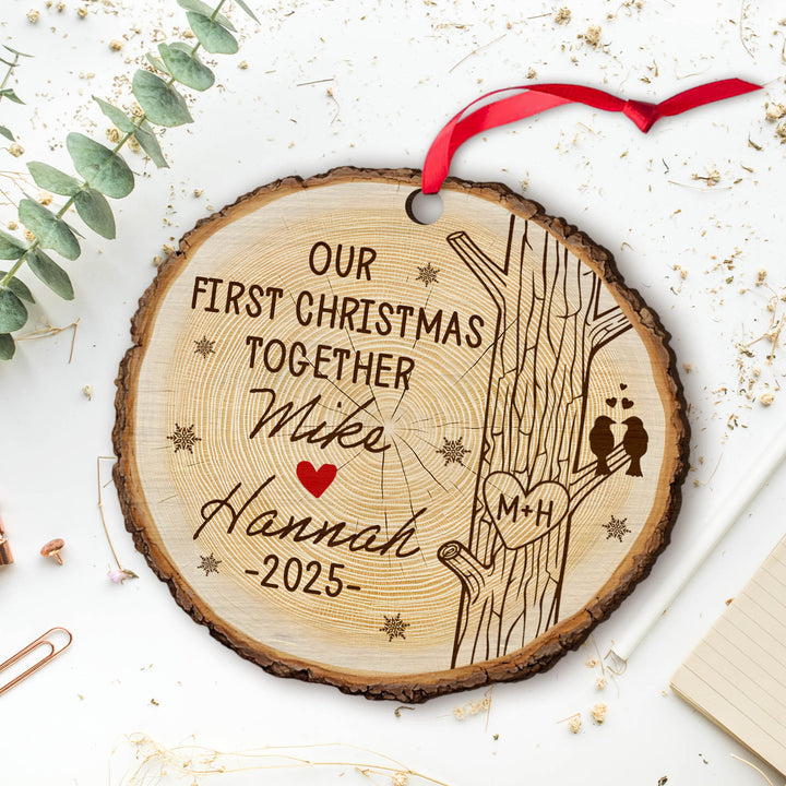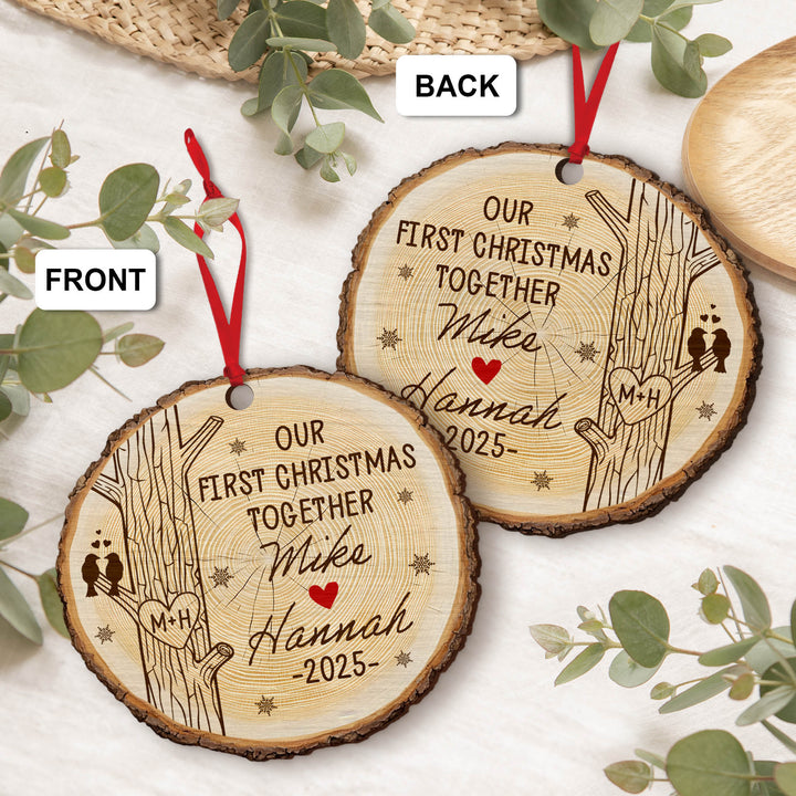 Personalized Couple Gift, Our First Christmas Ornament, Family Wooden Ornament, Wedding Anniversary Gift, Couple Ornament, Engagement Gift