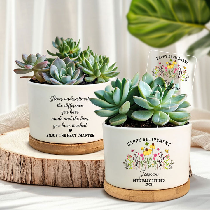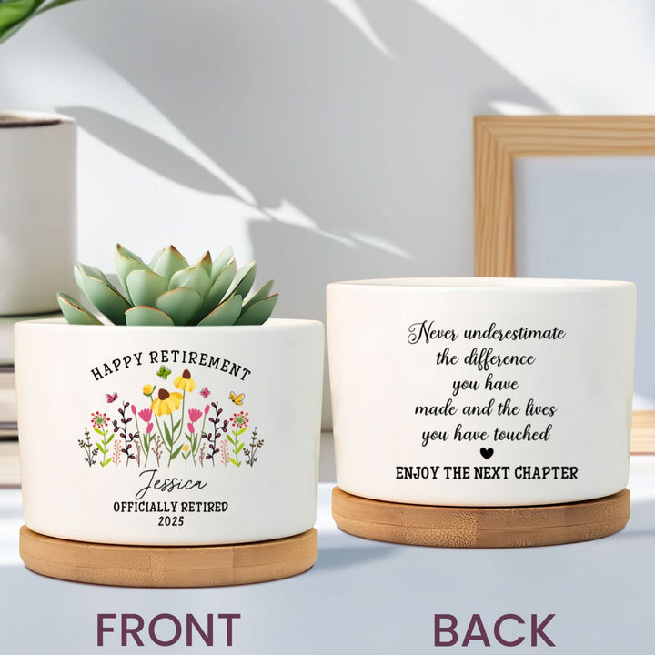 Personalized Retirement Ceramic Flower Planter Thank You Gift for Women