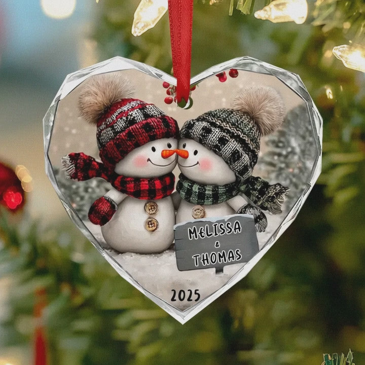 Personalized Snowman Couple Glass Ornament, Christmas Ornament For Couple Ornament 2025, Snowman Ornament, Engagement Gift, Newlywed Wedding Gifts