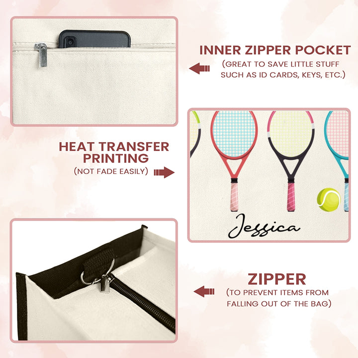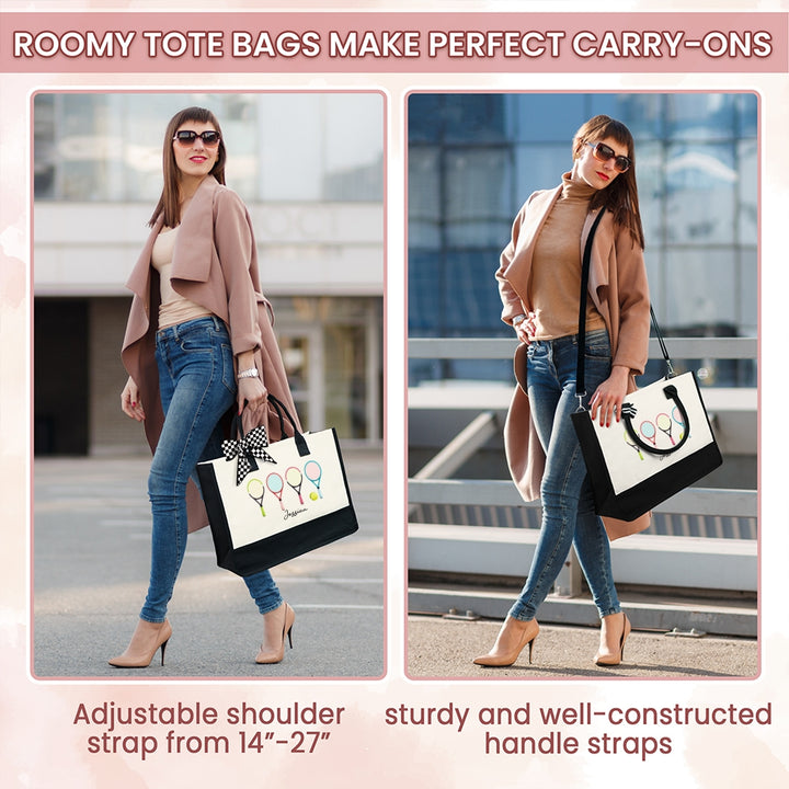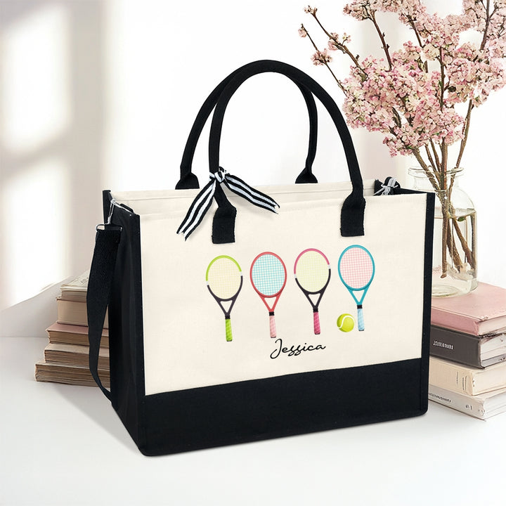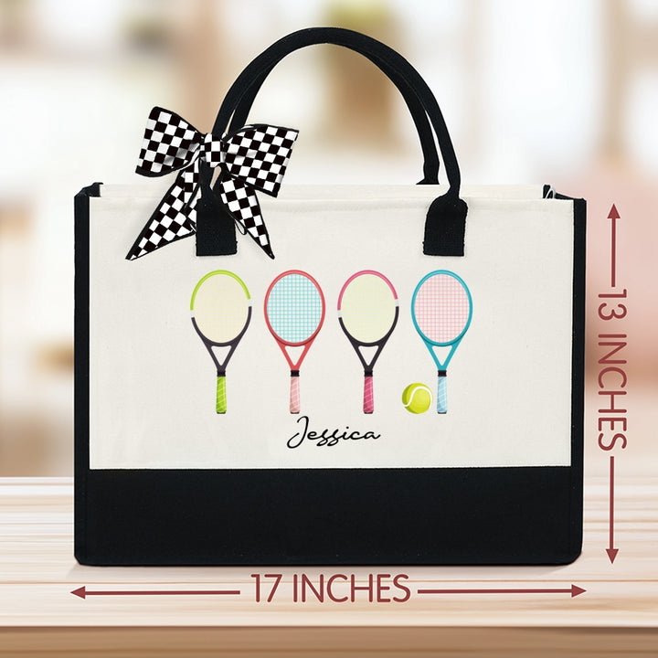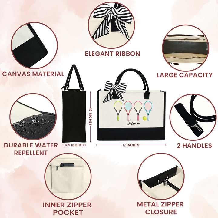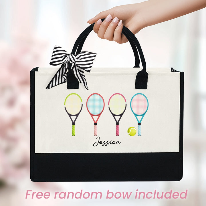 Personalized Tennis Tote Bag with Bow Gift for Tennis Lovers